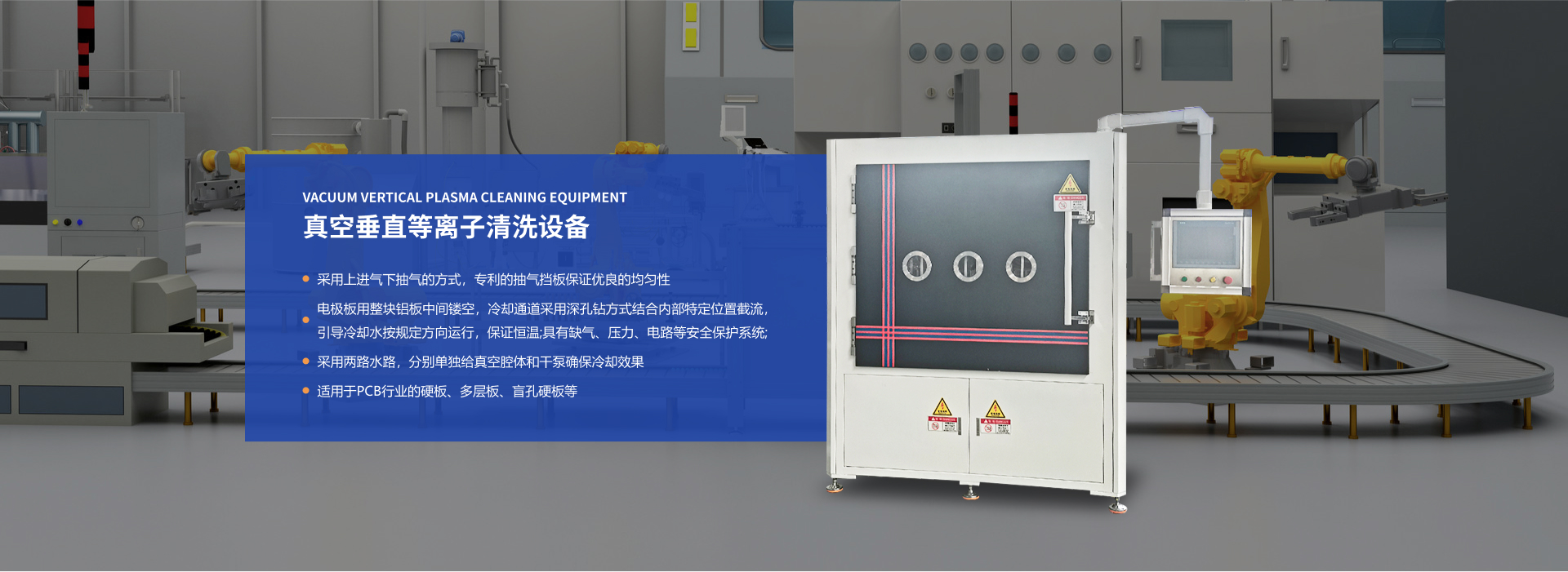 公司產品覆蓋PLASMA 清洗機、真空在線等離子清洗機、大氣等離子清洗機、寬幅等離子清洗設備、等離子表面處理設備、等離子除膠機、等離子刻蝕處理機、等離子電暈處理機等專業等離子清洗設備。